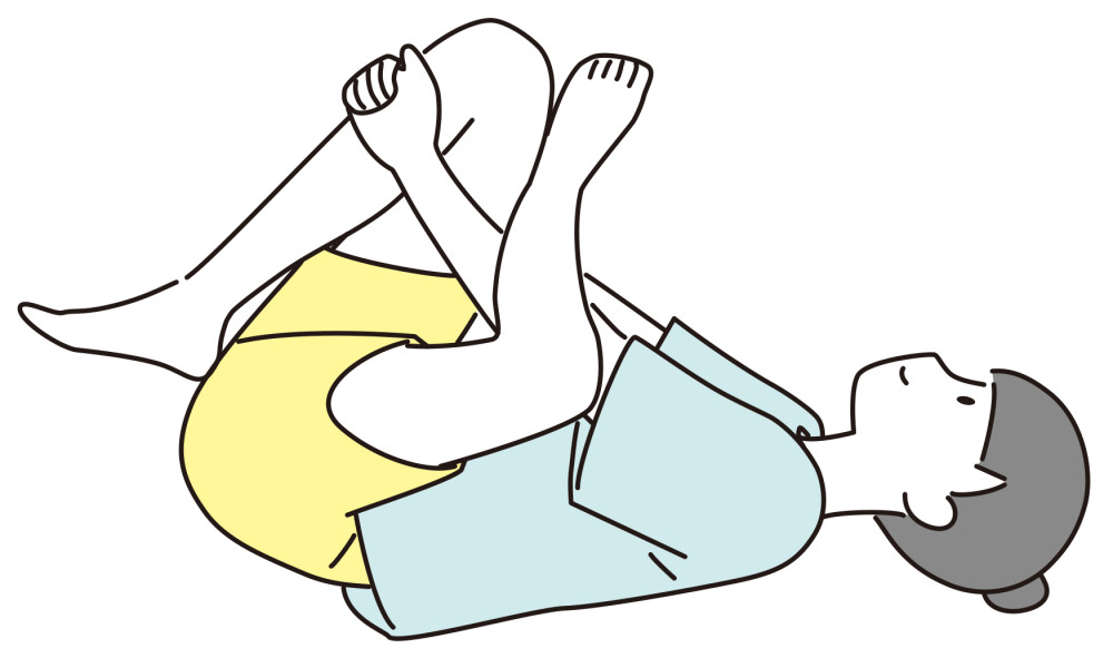 - 両ひざを軽く床に近づけるイメージで前に倒す