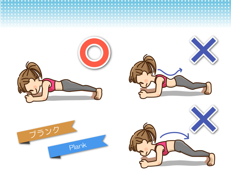 うつ伏せで、肘とつま先だけで体を支え、頭からかかとまで、まっすぐ静止する。 |